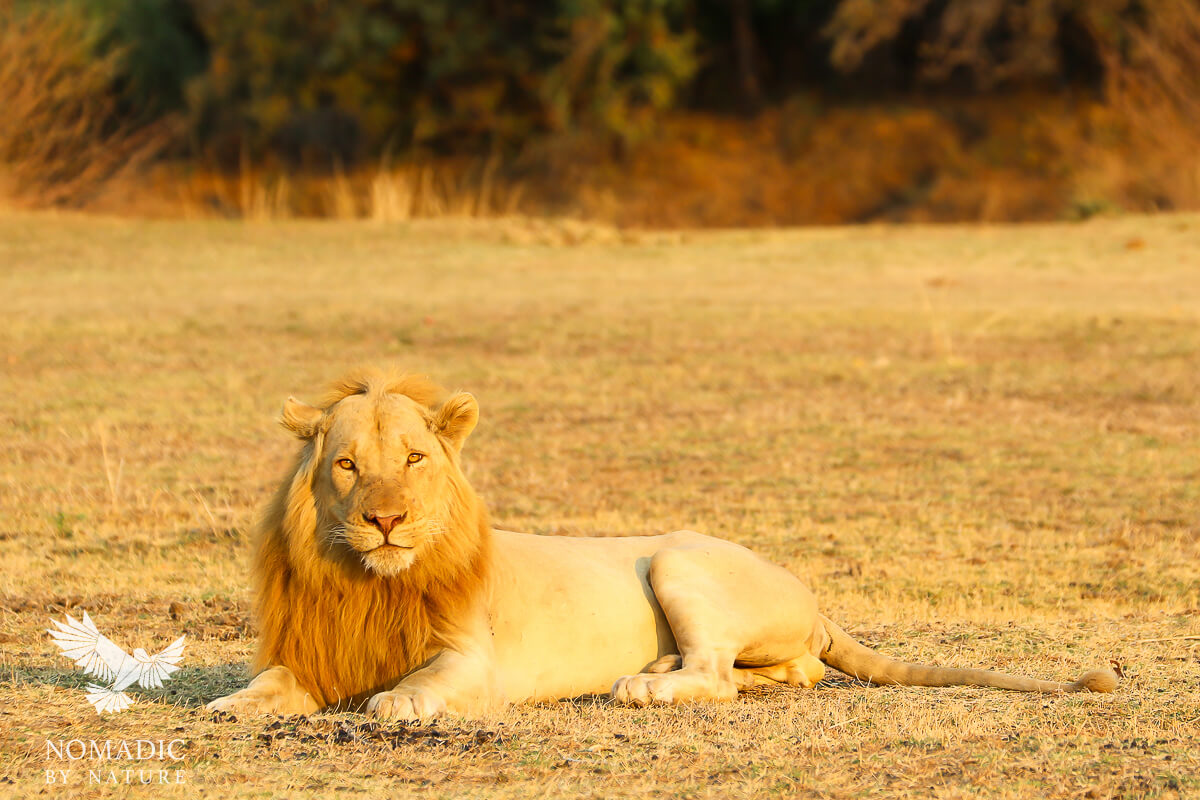 Retuning to a nesting site of carmine bee-eaters, I stumbled upon the hunting grounds of a pack of painted dogs, and found them there on three separate days, twice feasting on puku. On my last day, I found a beautiful male lion sitting in a prairie, he had a regal white hide with a distinguished amber mane. It was such a unique sighting, I almost stayed another day to try and find him again.