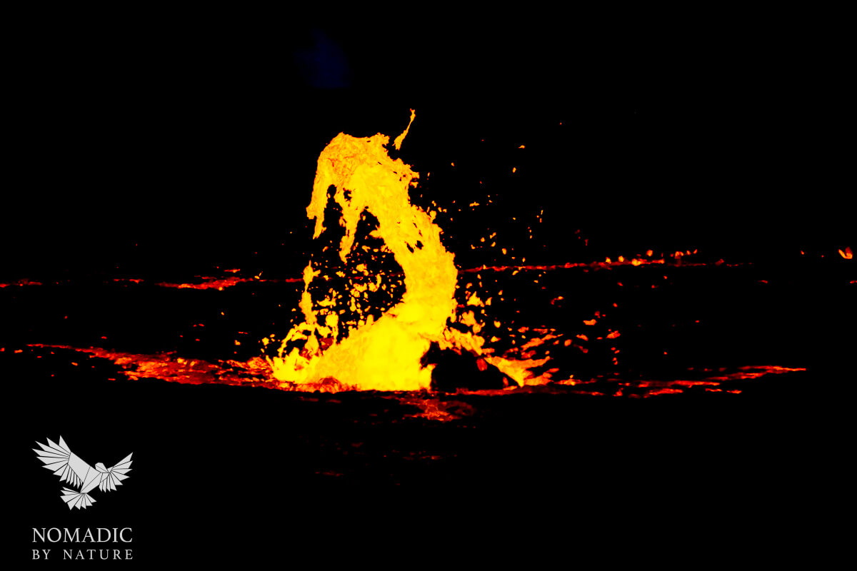 We stand for over an hour, moving around the rim, gawking at the pot of liquid rock cooking just below us. Parts of crust are uplifted, and subducted as the currents in the lava change, and we watch it melt like honey and reform into rock. It feels like the closest thing to the birth of earth that you can witness, and might be the only thing in our world that the surrounding Afar tribesmen fear. Traveling to Erta Ale is a spectacularly unique traveling experience, so make the pilgrimage to see its dancing fountains of lava in the Danakil Depression.