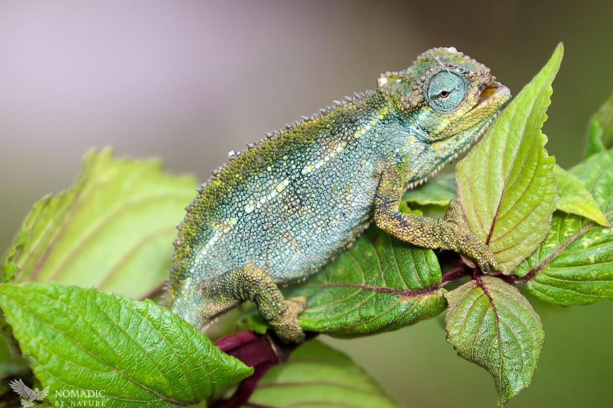 Chameleons slowly meander out on branches doing small little push-ups as they walk, and revolving their eyes around like turret guns watching for prey and raptors from above. As the sun goes down we hear communities of chimpanzees far below in the forest calling to each other, and see the lights in the town of Kasese turn on, and we know the urban comforts we left behind for the beauty of the mountains are now not far away.