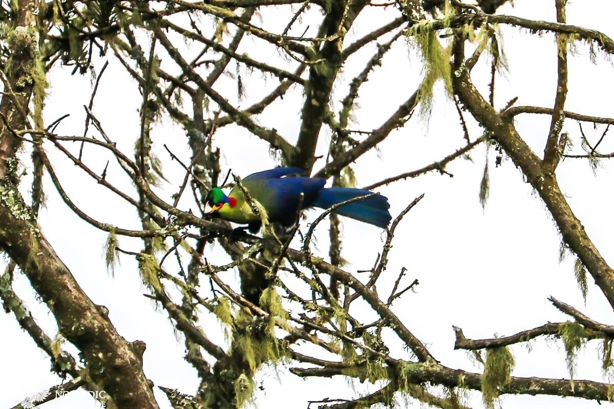 Passing out of the lower end of the valley, we return to the forests of giant heather, and at this lower elevation, the mountains seem alive again. We see the Rwenzori turaco’s red wings darting through the canopies, and glimpse blue monkeys watching us carefully through the branches. As the melodies of song birds begin weaving through the trees, we are reminded how harsh the environment we had been in was. So much so, almost everything that lives on the mountain avoids it.